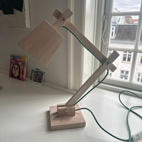 Muuto bordlampe i fyrretræ med grøn ledning i fin funktionel stand