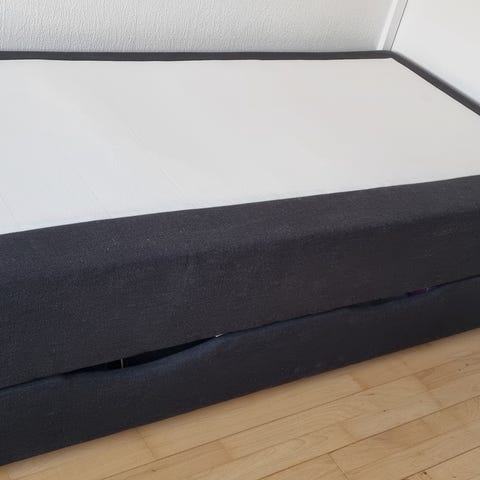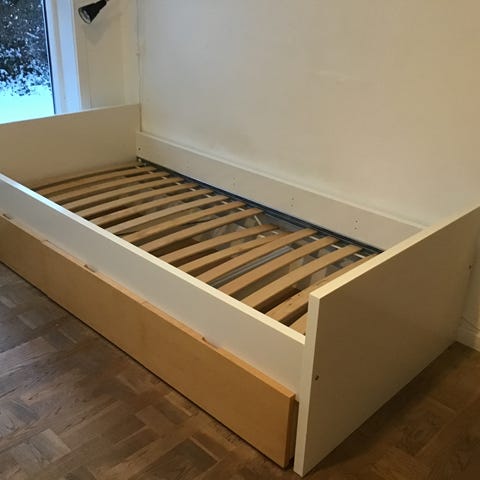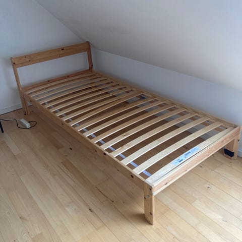 Det er en 90x200 seng fra ikea.