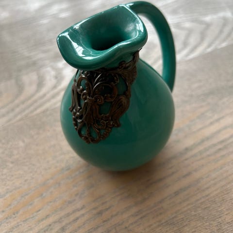 Keramik, Skål, C J Keramik, Christian Jensen, Meget smuk grøn skål med bronce ornamentik
