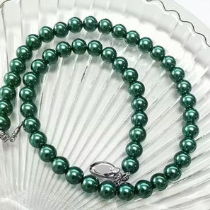 51 cm halskæde lavet af 8 mm grønne ferskvandsperler.