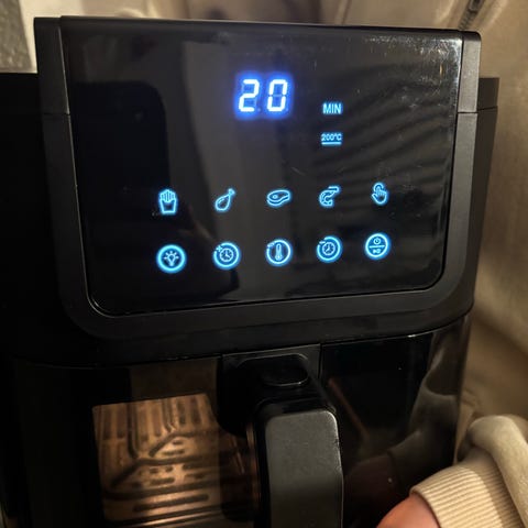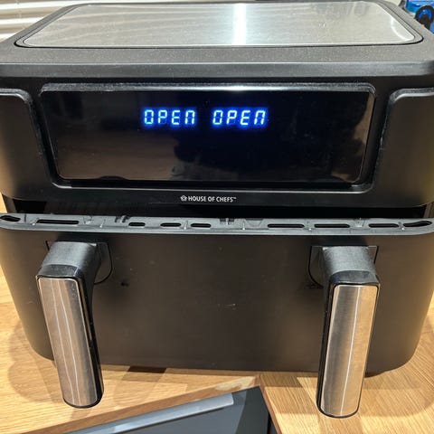 Haus Air Fryer model AFY20100 i sort farve. Luftfrituregryde med justerbar temperaturkontrol og aftagelig kurv til nem rengøring. Designet til tilberedning af mad med minimal olie.