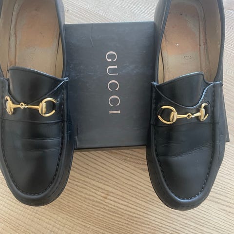 Stort set nye Gucci loafers i sort læder med horsebit i sølv. Str 38.