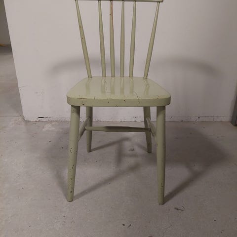 Træstol der trænger til kærlighed, men så har du også en skøn stol.