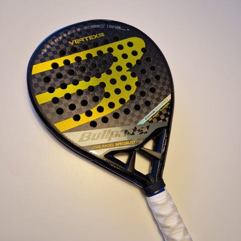 Bullpadel Hack Comfort padelbat med hulmønster og ergonomisk greb. Farve: hvid, sort og grøn. Designet til padelspil med fokus på komfort og kontrol.