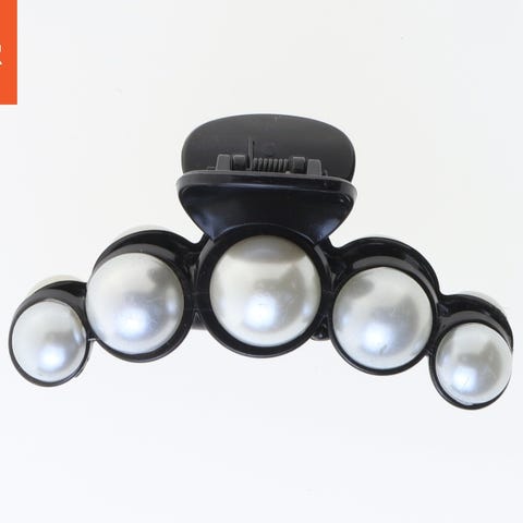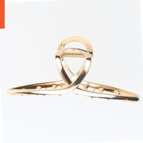 Lillle guld hårklemme med sommerfugl design og perle detaljer.