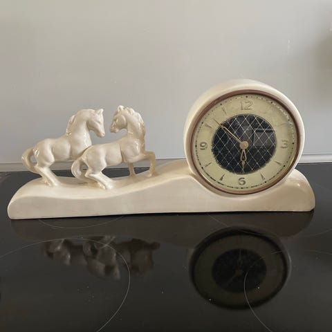 Keramisk ur med papegøjefigurer