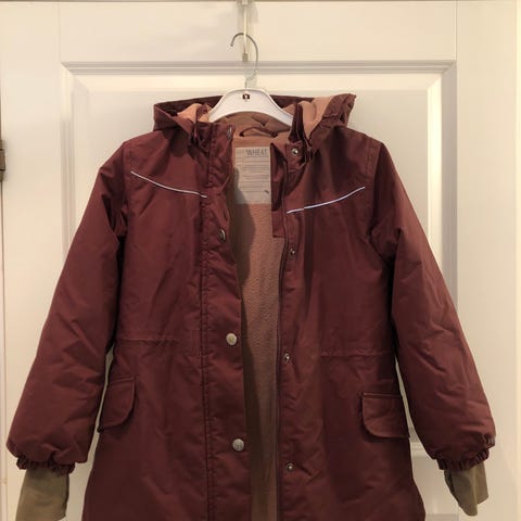 Wheat børnejakke i størrelse 74 til piger. Jakken er lyserød og lavet af polyester. Den har hætte og lukkes med lynlås samt trykknapper. Jakken er designet til at give beskyttelse mod vind og vejr.