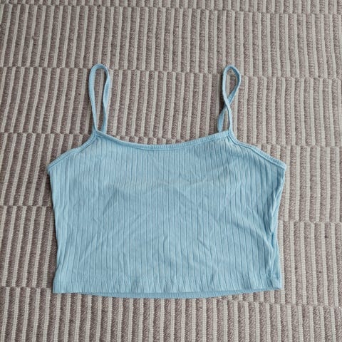 Blå crop top, top med frynser og let peplum