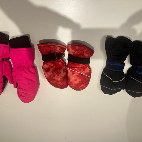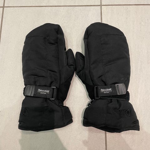 Næsten som nye. Stort set ikke brugt. Det er en skal-handske som er 100% vind- og vandtæt samt en ny inder-handske/luffe i uld. Disse er det eneste som virker fantastisk, også i ekstrem kulde.