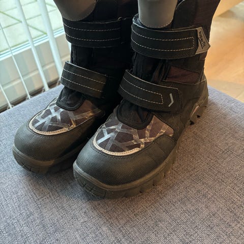 Salomon børnestøvler til dreng i størrelse 36. Støvlerne er blå og velegnede til udendørs brug med solid sål og varmeforing.
