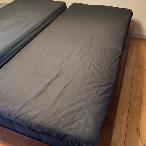 90 cm bred, 200 cm lang og ca. 5 cm tyk. Madras fin stand og betræk rent og helt ned velfungerende lynlås