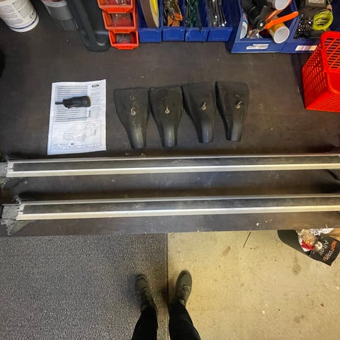 Thule tagbøjler til bil i sort farve. Designet til at monteres på bilens tag for transport af ekstra bagage eller udstyr. Fremstillet af holdbart materiale for stabilitet og sikkerhed under kørsel.