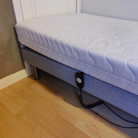 Sælger min 90x200 elevationsseng den fungere helt fint, farven er sort, der er ingen pletter eller slid på, dog synes jeg den knirker lidt når man bevæger sig meget.