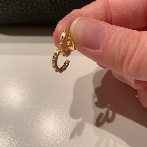 Flotte små øreringe fra Spirit Icons. Metaller er lavet i forgyldt sterlingsølv og måler 13mm i diameter. Øreringene er pyntet med syntetiske sten både foran og på bagside. Har aldrig været brugt. Ligger i originale Spirit Icons poser.