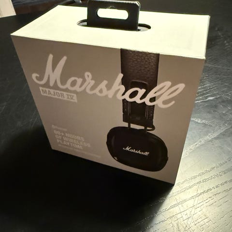 Marshall Major IV Bluetooth hovedtelefoner i sort farve. Hovedtelefonerne har trådløs Bluetooth-forbindelse, justerbar hovedbøjle og polstrede ørepuder for komfort. Produktet inkluderer original emballage, opladningskabel, brugervejledning og kan godt sende købsbevis hvis nødvendigt