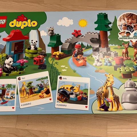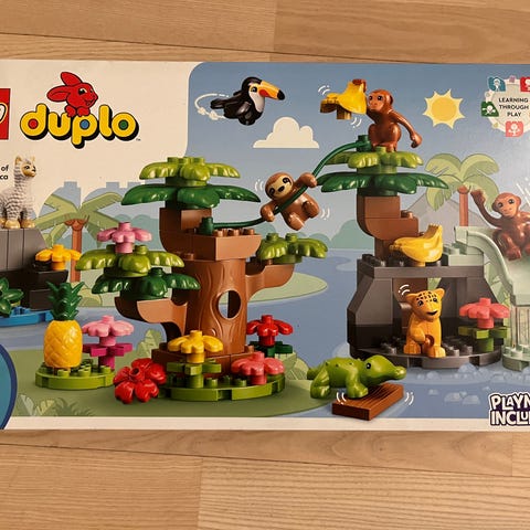 LEGO DUPLO Havets vilde dyr byggeklodser med figurer af hvaler, fisk, skildpadde og koraller. Egnet til børn fra 2 år og op. Inkluderer forskellige farverige klodser til leg og læring om havets dyr.