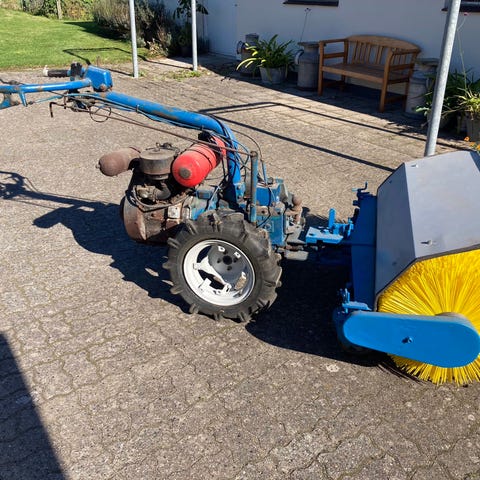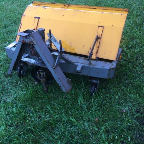 Fejemaskine med svingbar kost, bredde 100 cm. passer til Nibbi 2 hjulet traktor men kan tilpasses andre traktorer. Prisforslag 2500 Kr.