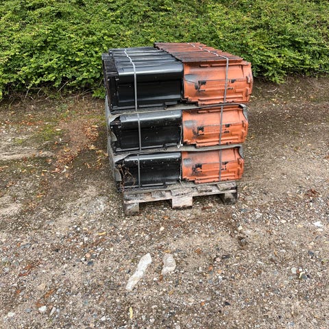 Tagsten, Nibra, H-10 Mørkeblå glaseret ( næsten sorte ) 250 stk. ca. 25 m2 meget flotte 14 stk. tag rygning