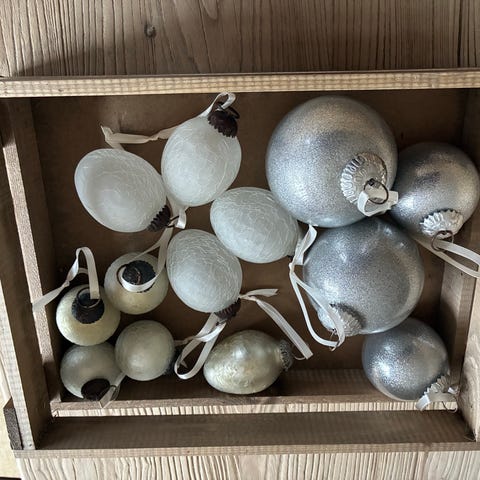 &Tradition 9 stk. Julepynt bestående af julekugler i assorterede farver. Kuglerne er af glas og patinerede da de er meget gamle.