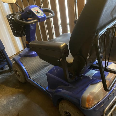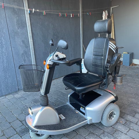 El scooter fra 12mdr 21. Brugt meget lidt. Stået inde altid. Kun brugt til at køre til købmanden 500M ca en gang i ugen. Rolatorholder og regnslag. Mig bekendt har der aldrig været problemer eller fejl. Nypris 25000, regning og brugsvejledning haves.