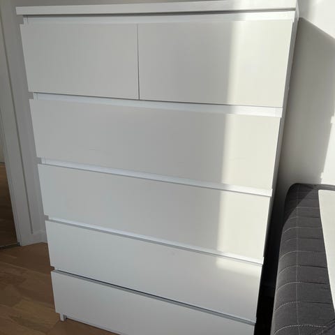 MALM kommode med 4 skuffer fra IKEA - mangler kun hængsler og skruer til evt. fastmontering til væg.