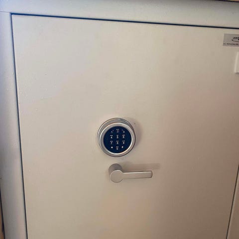 Solidt sikkerhedsskab / nøgleskab Safir 742 sælges. Skabet er velegnet til opbevaring af værdigenstande, dokumenter, nøgler eller lignende, hvor der ønskes ekstra sikkerhed.