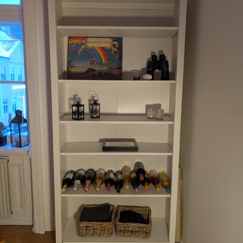 Hvid Hemnes reol fra IKEA. Fås ikke i helt hvid længere. Stået i stue og sidst på børneværelse, men i god stad, selvom den er brugt. Få synlige brugsspor.
