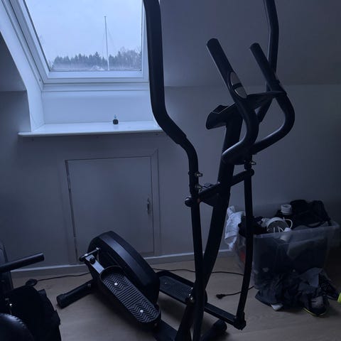 Christopeit Sport Crosstrainer CS 5 med trinløs modstand, digitalt display og indbygget pulsmåler. Maskinen er designet til hjemmebrug og giver en lav-impact helkropstræning. Farve: sort med sølvdetaljer.skal ned af 16 trappetrin.