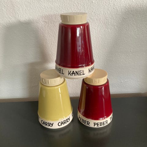 Flot bordeaux retro krydderikrukke til kanel fra Kronjyden.