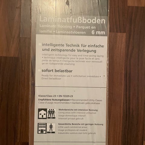 Laminatgulv (klikgulv) i god stand taget op fra 2 værelser på hhv. 10m2 of 12m2. Enkelte af brædderne har fået mindre skader i forbindelse med optagning (se billeder), men langt de fleste brædder fejler intet. Der sidder desuden fugerester i sideerne på enkelte af brædderne.