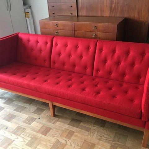 Erik Jørgensen sofa produceret af Fredericia Furniture model EJ 315. Klassisk kvalitet og komfort fra øverste hylde - men som samtidig kan passe sammen med/ind i den moderne minimalistiske indretning. Sofaen vil efter rens fremstå flot - samt man benytter sig af 2 knapper fra bagsiden af hynden.