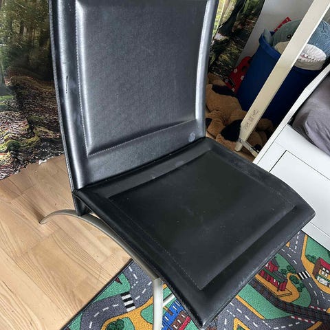 Stol i træ med metalstel