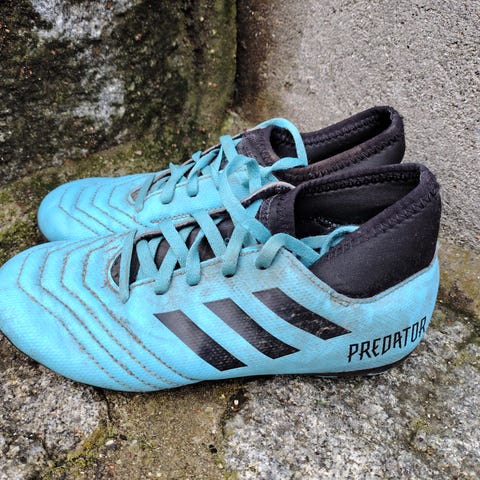Adidas Predator fodboldstøvler i blå og sort . Str 35.5. Designet er uden snørebånd for en strømlinet pasform.