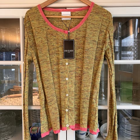 Cardigan, Eva og Claudi, str. 40, Grøn med mønster, Bomuld, Næsten som ny, Fin cardigan som også kan lynes op i ryggen (se billede 2). Størrelsen er M.