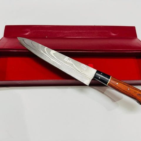 Super lækker japansk fremstillet forskærerkniv i super hårdt stål, perfekt til skære kød eller fisk eller til udskæring af steg.