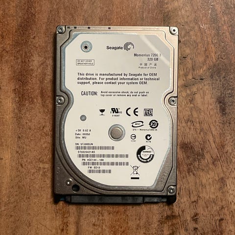 Seagate Momentus 7200.3 320 GB harddisk med 2,5" formfaktor. Designet til brug i bærbare computere og andre enheder, der kræver en kompakt lagerløsning.