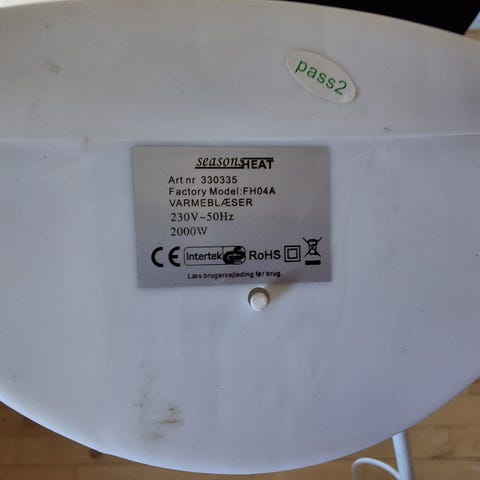 Varmeblæser med regulerbar termostat.