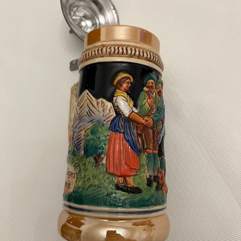 Det store hvide krus er 19 cm i højden og 10.5 i diameter og er i porcelæn.