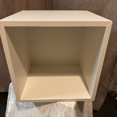 Klæd din væg på med dette hvide Eket-skab med to rum. Lav en klassisk opbevaringsløsning med nogle få skabe, eller kombiner så mange, du vil, på en sjov og overraskende måde, så løsningen matcher dine behov og gør dit rum mere personligt. Denne type af Eket-skabene kan kun købes i kombination med andre skabe og udgår snart i Ikea.