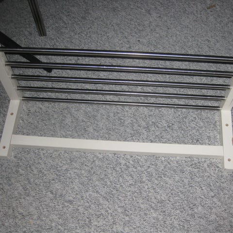 Fin lille hylde, der har hængt i pige-teenageværelset. Den er nem at montere med de små huller i hjørnerne.