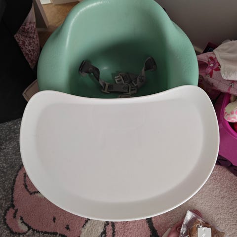 Sædet har trepunktssele og er perfekt som en ekstra højstol eller til at tage med på farten.