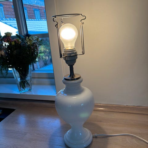 Her en skøn mellemstor bordlampe fra Royal Copenhagen og produceret af Holmegaard Glasværk.