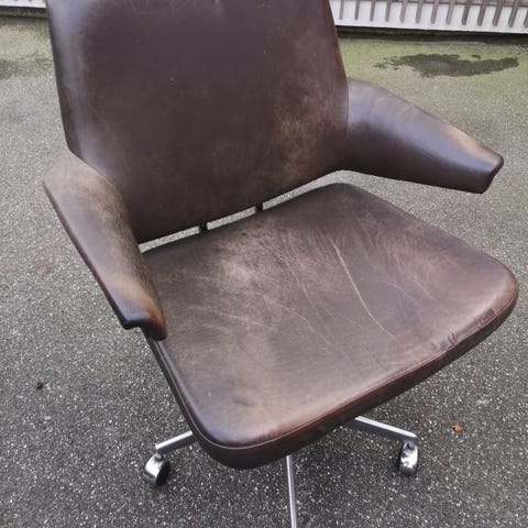Retro, læder kontorstol designet af Jørgen Rasmussen