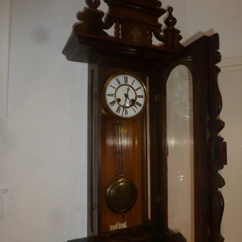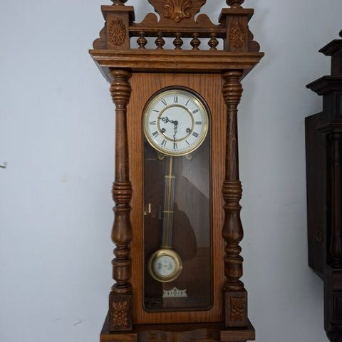 En eg træ regulateur fra 1970'erne fra den tyske producent JEKA. Uret ser ud som nyt, og det fungerer perfekt. Hver time og halve time lyder uret, gennem en dobbeltklang på tre gongstave, for at vise, hvad klokken er. Ruderne er facetslebet. Billederne udgør en del af beskrivelsen.