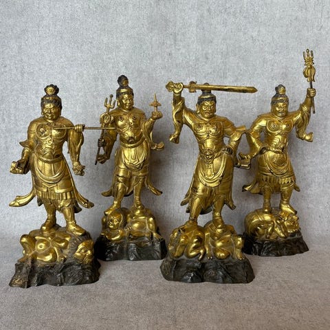 En forgyldt bronze-statuet fra Tibet med titlen God van de rijkdom, fra det 20. århundrede, 32 cm høj, 28 cm bred og 15 cm dyb, vægt 4 kg, i god stand. Klik på den blå "gå til varen" knap, for at købe eller byde på denne vare. Den samlede pris vil blive vist inden du afgiver dit bud.