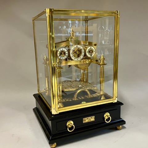 Flyvende pendulur - Messing-urværk under glashus. - Nyligt
