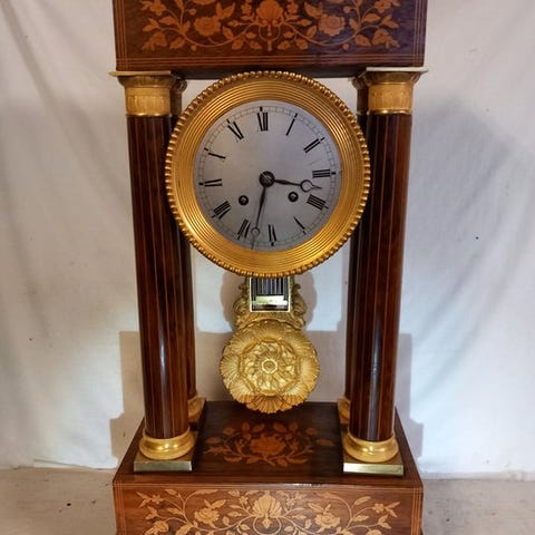 Figuren øverst, 'Den Ædle Gartner' af uret, er et almindeligt dekorativt element fra den tid.