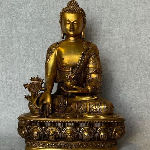 Bronze Buddha-statue fra Kina, 30,5 cm høj, 20 cm bred, 15 cm dyb, vægt 3,2 kg, fra det 20. århundrede, titel 'Boeddha 30.5 cm / 3.2 kg', i god stand. Klik på den blå "gå til varen" knap, for at købe eller byde på denne vare. Den samlede pris vil blive vist inden du afgiver dit bud.