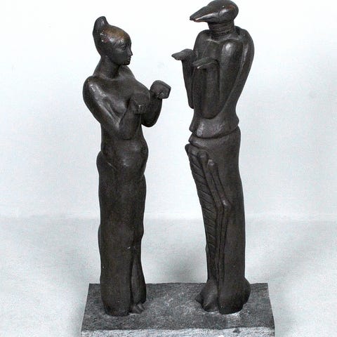 Pablo Serrano Aguilars bronzeskulptur Unidad Yunta (1972), udgave 273/500, mål 15 cm × 8 cm × 14 cm, vægt 2 kg, signeret og i god stand, Spanien. Klik på den blå "gå til varen" knap, for at købe eller byde på denne vare. Den samlede pris vil blive vist inden du afgiver dit bud.