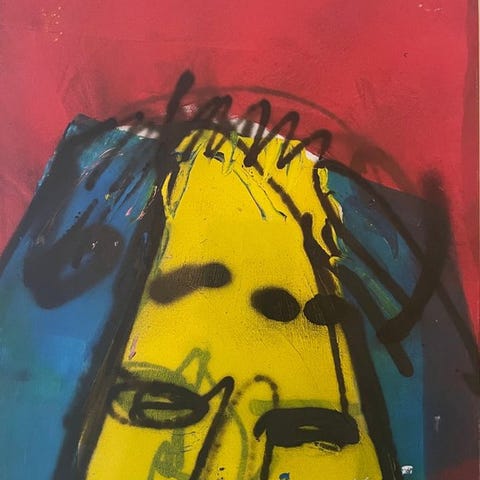 Espen Greger Hagen (1964–2008), Party Animals, et originalt acrylmaleri og spraymaleri på 100 × 140 cm fra 2002 i farverne rød, blå, gul, sort og rosa, underskrevet og med et ægthedscertifikat. Klik på den blå "gå til varen" knap, for at købe eller byde på denne vare. Den samlede pris vil blive vist inden du afgiver dit bud.